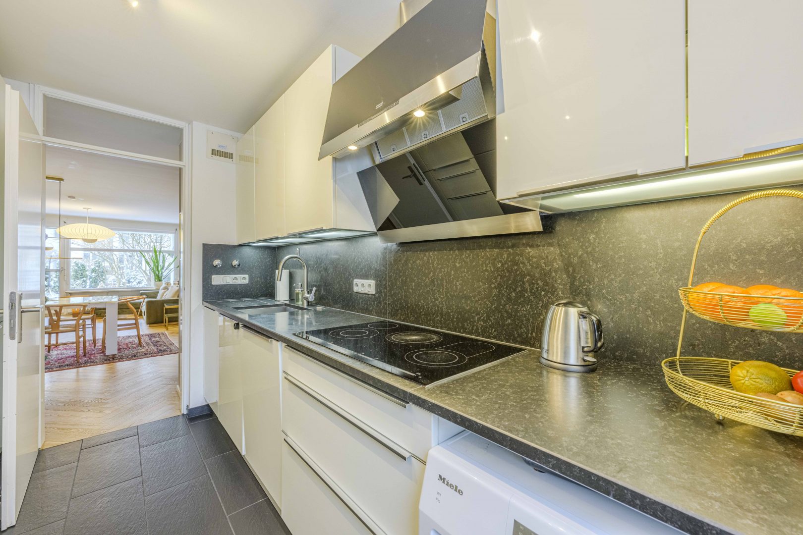 Die Wohnung erstreckt sich über eine Ebene und bietet einen sehr großzügigen Wohn- und Essbereich mit direktem Zugang zur Südwestterrasse und in den offenen Garten. Die separate Küche ist in einem eigenen Raum untergebracht und fügt sich harmonisch in das durchdachte Wohnkonzept ein.
